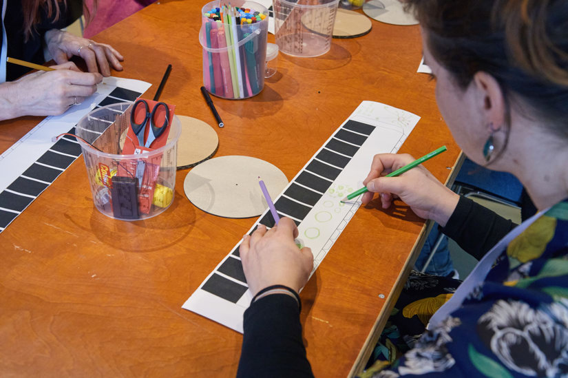 Om in de creatieve stemming te komen, gaat de middag van start met inspirerende keuzeprogramma’s. Van leren over digitale cultuureducatie tot een verhaal schrijven met ChatGPT, op verschillende manieren wordt de creativiteit van de deelnemers aangewakkerd. Zo ook bij de workshop ‘Veranderkracht door maakkracht’ waarbij een zoötroop wordt gemaakt. Een zoötroop is een cilinder met afbeeldingen aan de binnenzijde die, als je ‘m ronddraait, de illusie van beweging weergeeft.